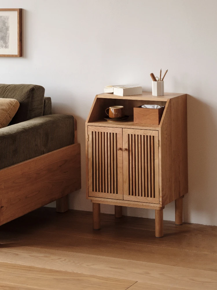 MUMO Wooden Grille Side Cabinet - Elegant Cherry and Walnut Wood Storage Solution for Tea Rooms, Living Rooms, and Kitchens - Premium Solid Wood Furniture