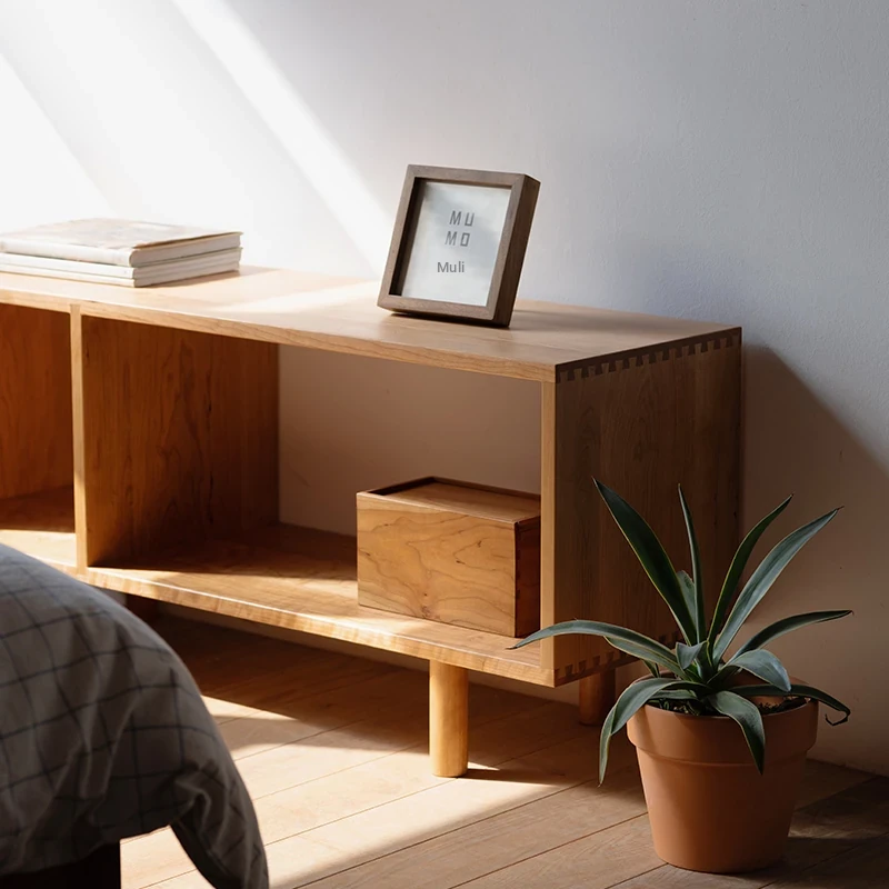 MUMO Wooden Ink Round-Leg Single-Layer Square Cabinet - Modern Cherry Wood Solid Living Room TV Stand