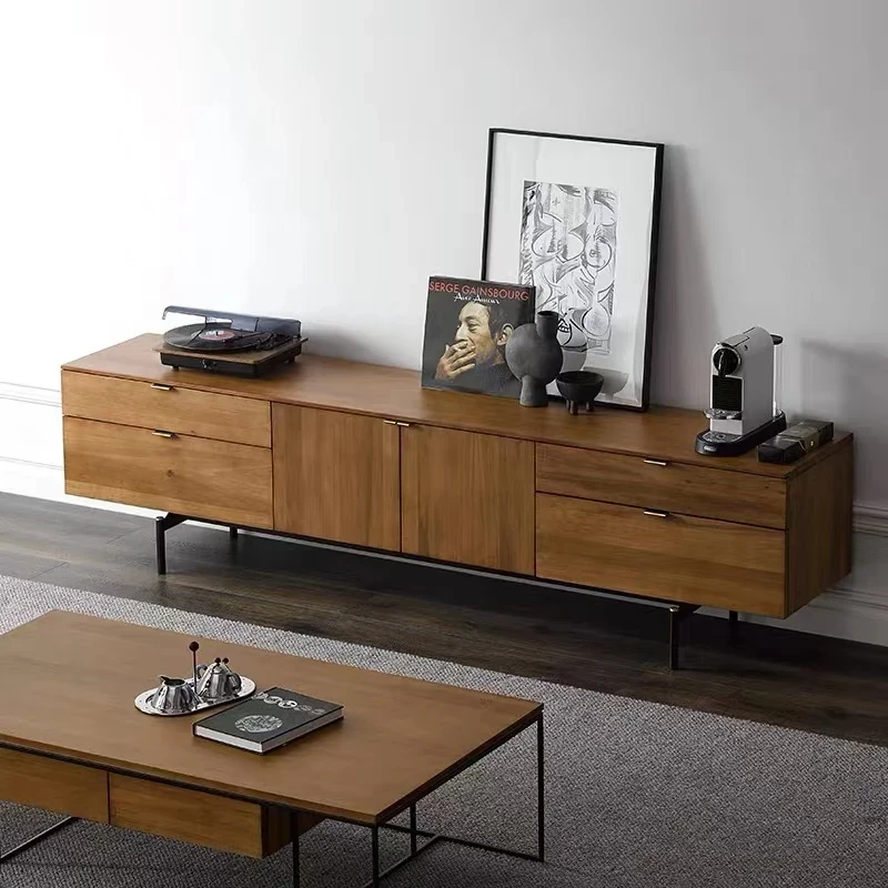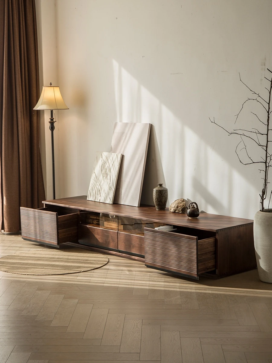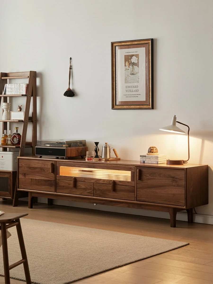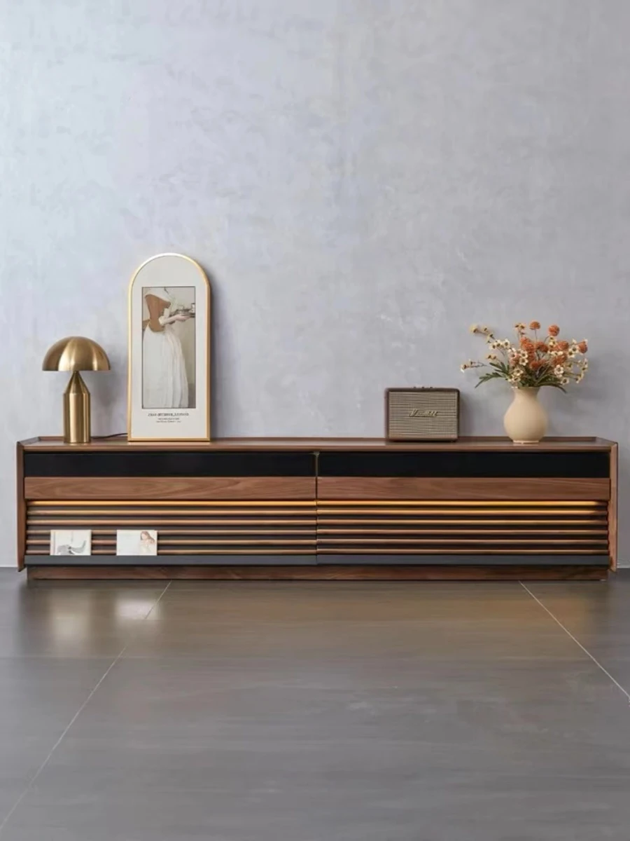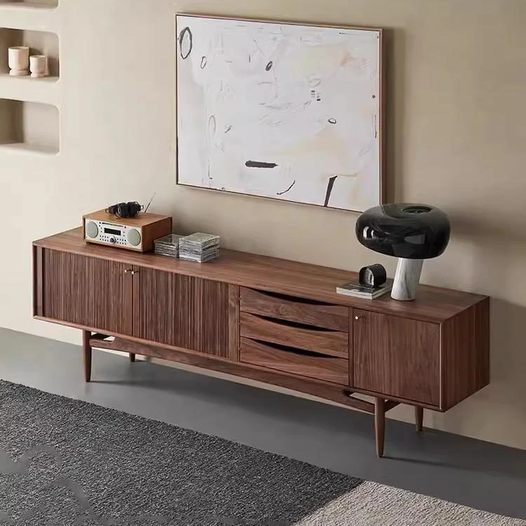 North American Walnut Solid Wood TV Stand - Italian Minimalist Design for Living Room, Chic and Elegant Solid Wood Cabinet