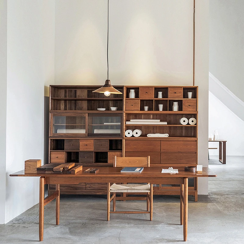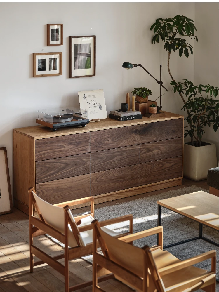 Nordic Modern Black Walnut Storage Cabinet - Solid Wood TV Stand, Tea and Coffee Cabinet, All-Purpose Organizer, Ideal for Dining Rooms and Living Spaces