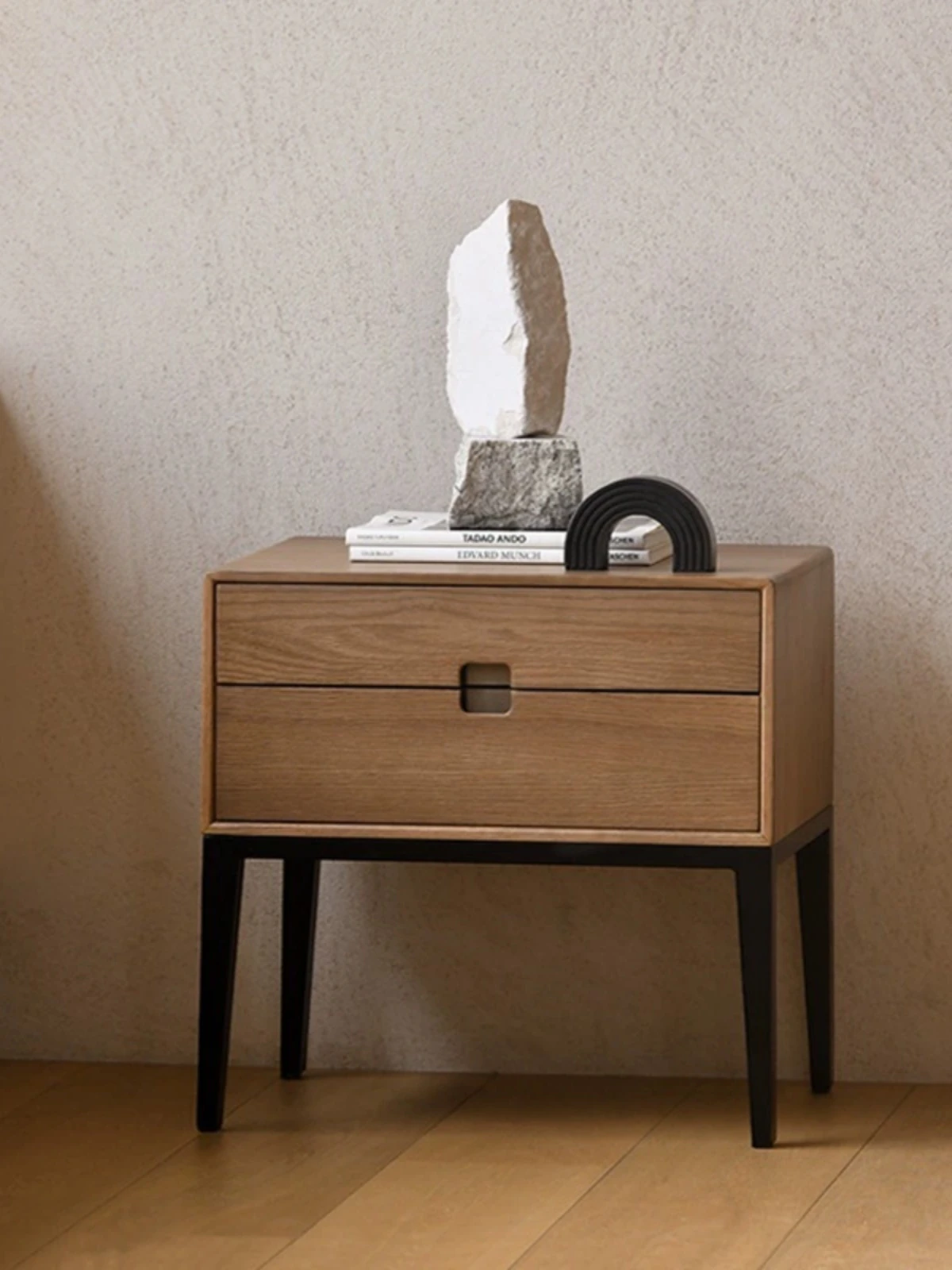 Scandinavian Minimalist Modern Nightstand - Solid Wood Storage Cabinet for Small Bedrooms, Oak Side Table with a Chic Aesthetic