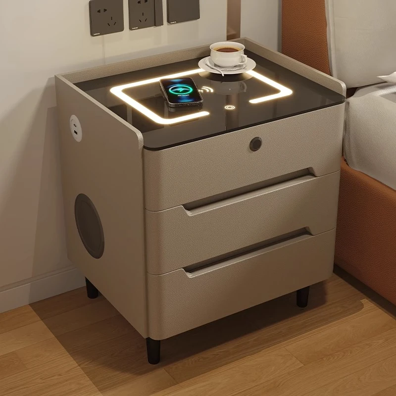 Smart Charging Nightstand – Multifunctional Modern Storage Cabinet with Fingerprint Lock for Home Bedroom – Trendy and Space-Saving Design!