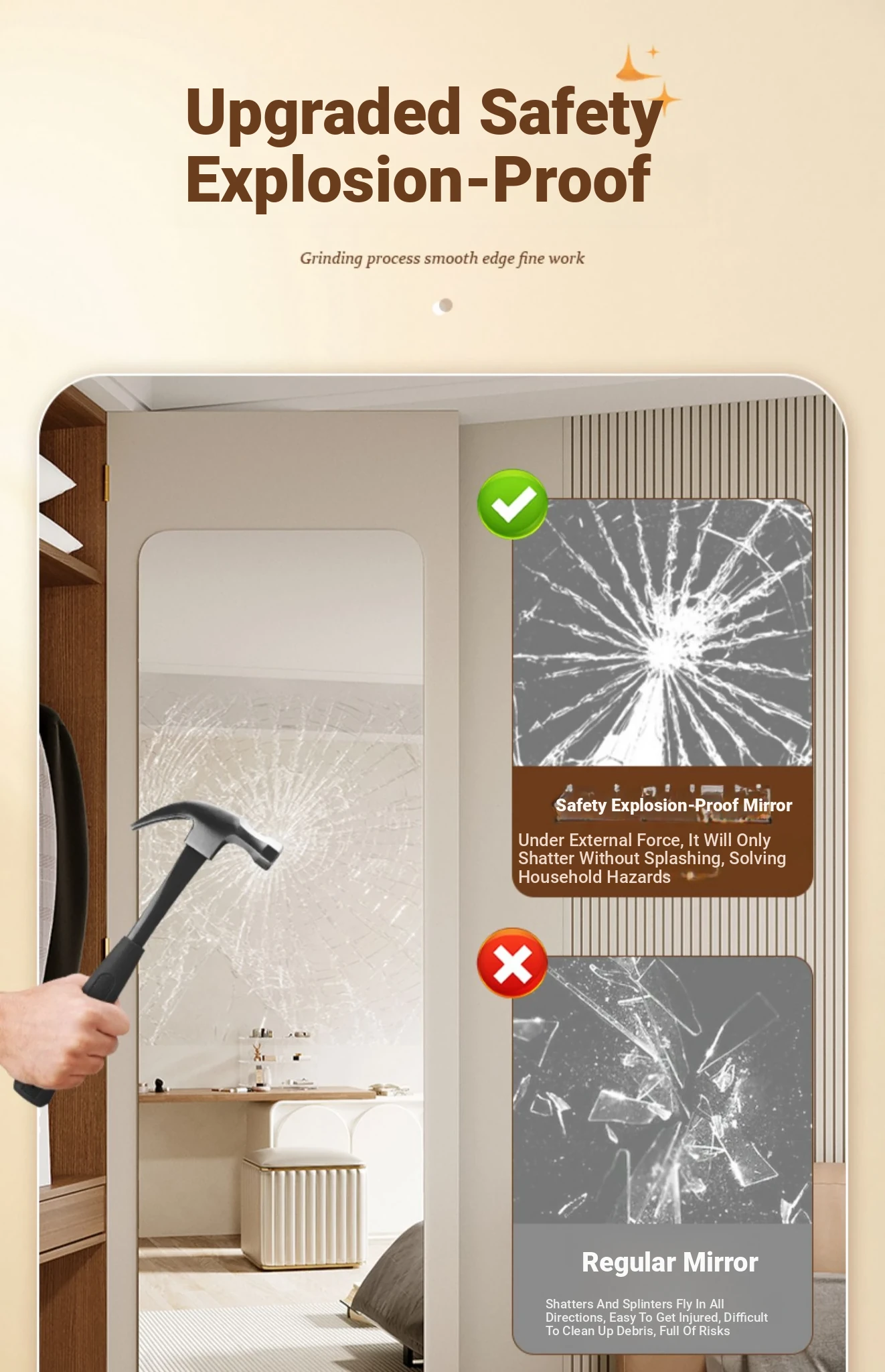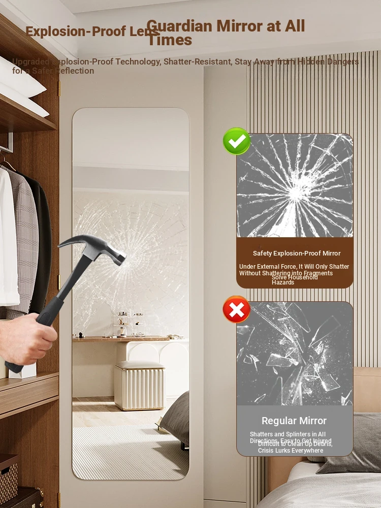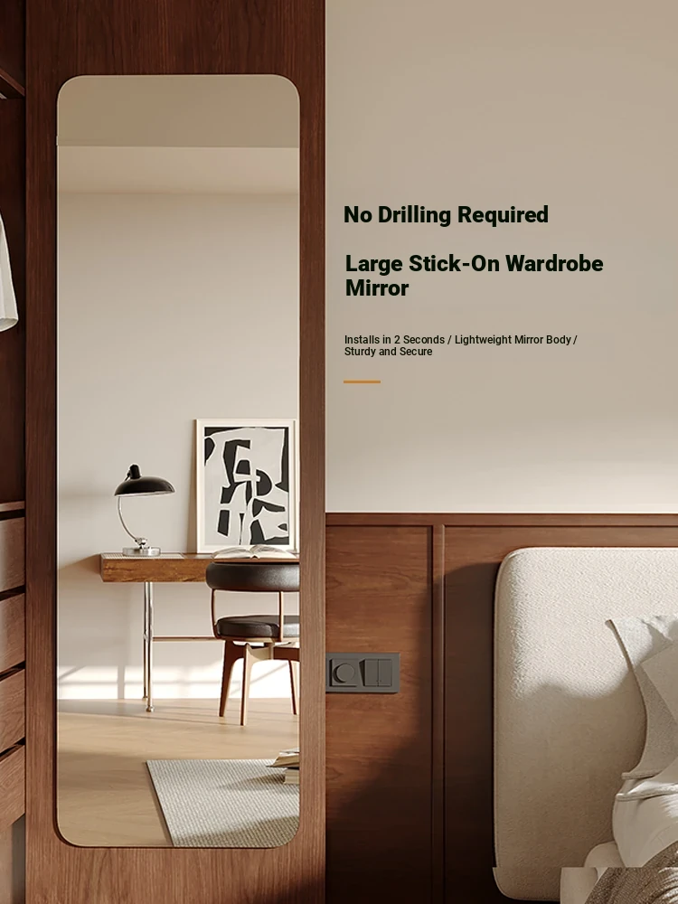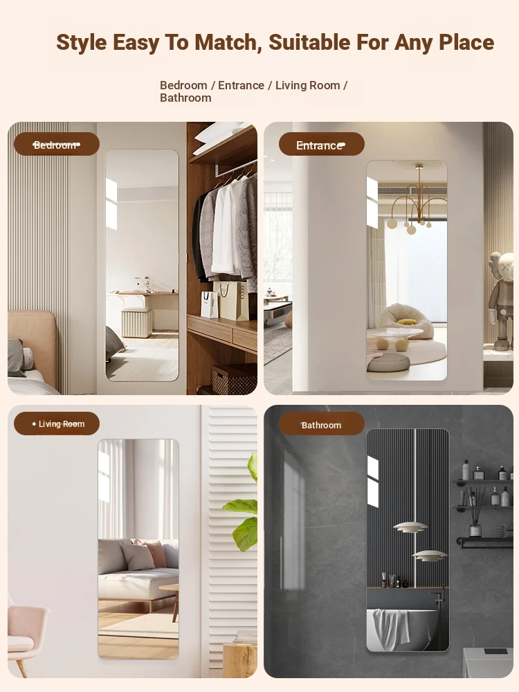 Self-Adhesive Full-Length Wall Mirror for Bedroom & Dorm - No Drilling Required, Invisible Closet Door Dressing Mirror, Perfect for Stylish Space Optimization