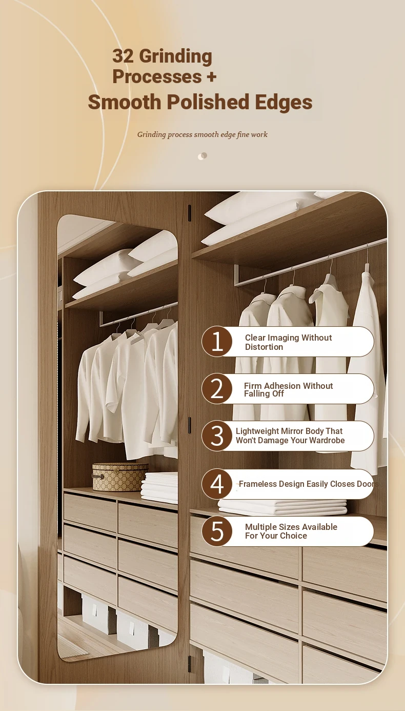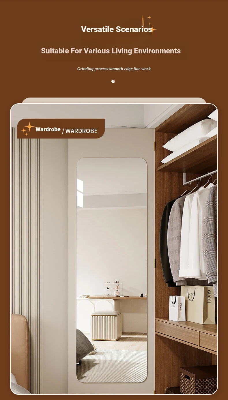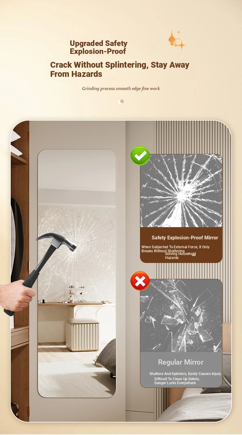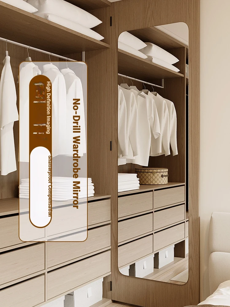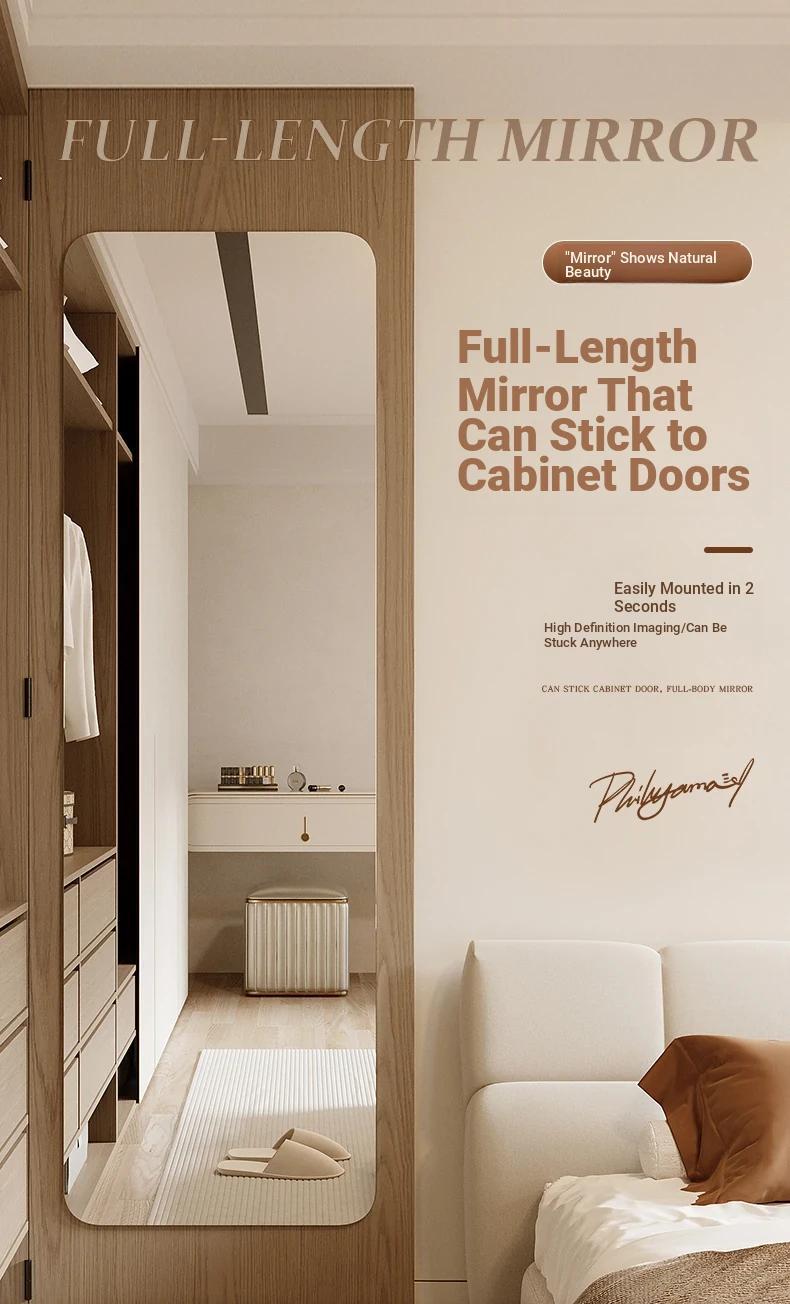 Self-Adhesive Full-Length Wall Mirror - No Drilling Required, Perfect for Wardrobes and Dorm Rooms, Sleek Hidden Design for Easy Installation, Ideal for Dressing and Grooming.