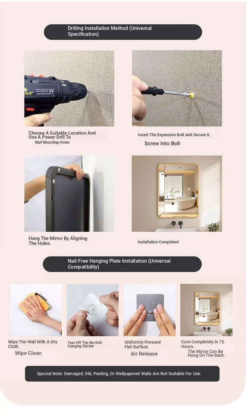 Self-Adhesive Wall-Mounted Makeup Mirror - No Drilling Required for Easy Installation in Bathroom, Toilet, or Dressing Area - Perfect for Home Use