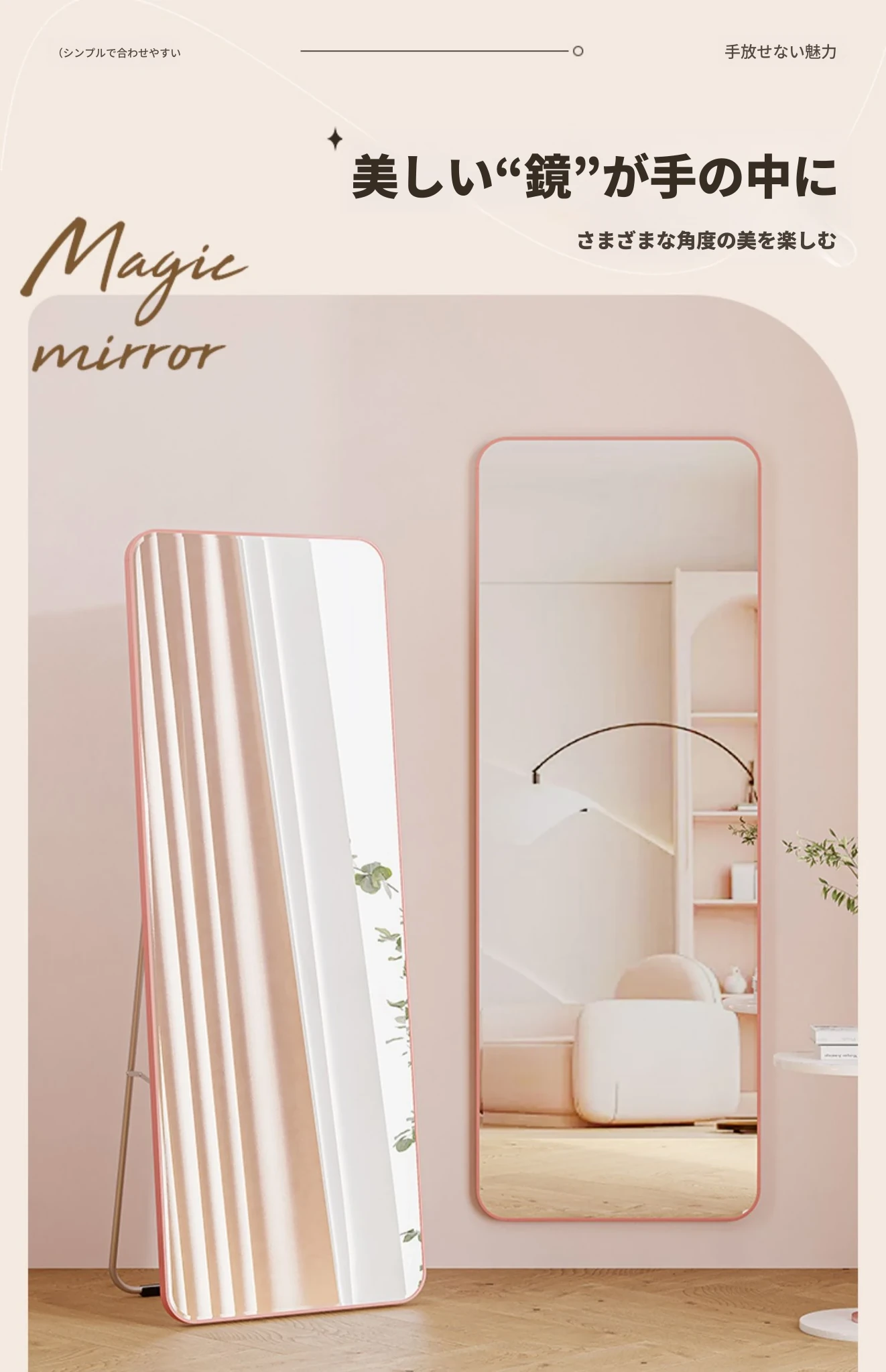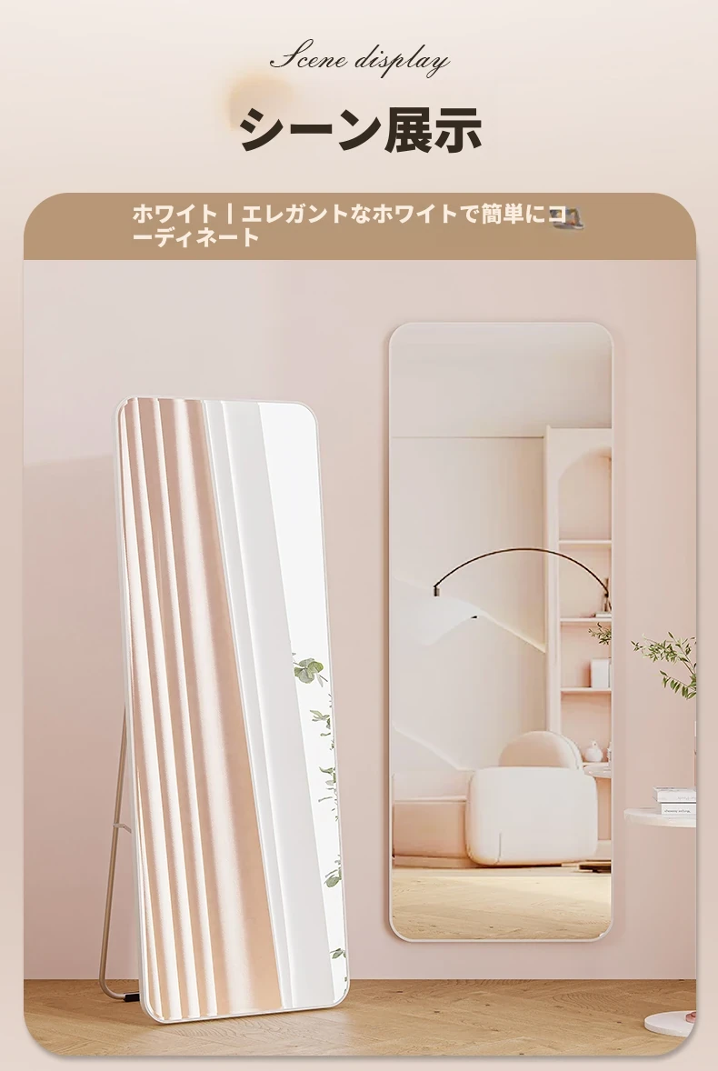 全身鏡・立て掛け鏡・おしゃれなドレッシングミラー!女性のための可愛いプリンセス風デザイン、寝室や服装店に最適!試着も楽しくなる、あなたのスタイルを引き立てる素敵なアイテムです。