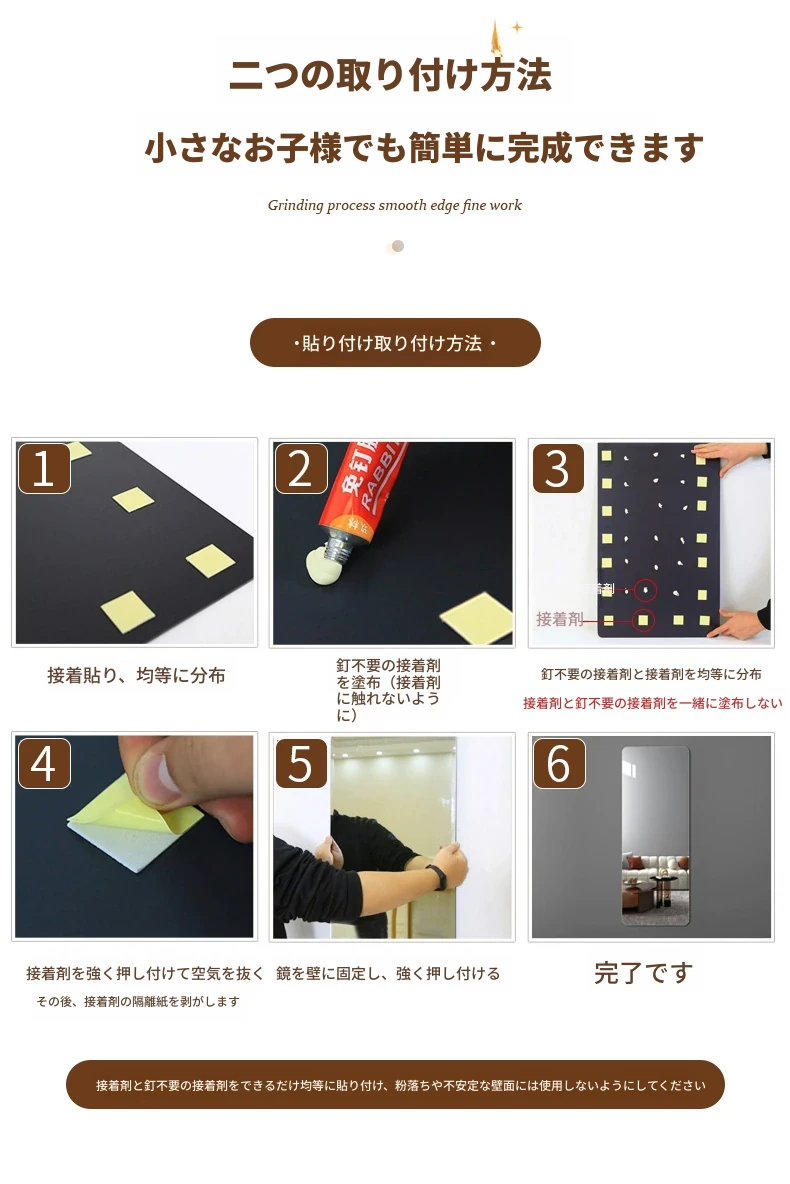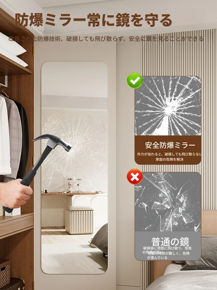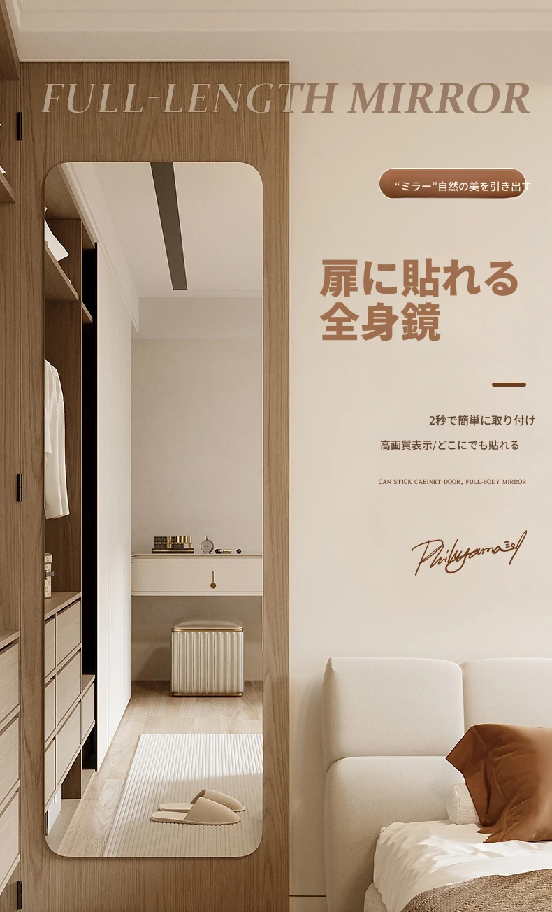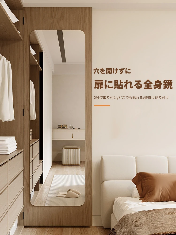 全身鏡 壁に貼るだけの自粘式 クローゼットドア用 おしゃれな隠れた鏡 宿舎にも最適 穴あけ不要のガラスミラーでコーディネートを楽しもう!