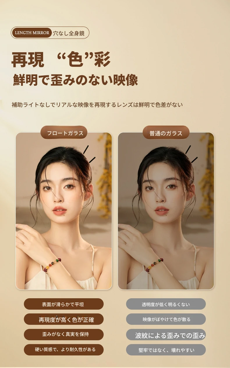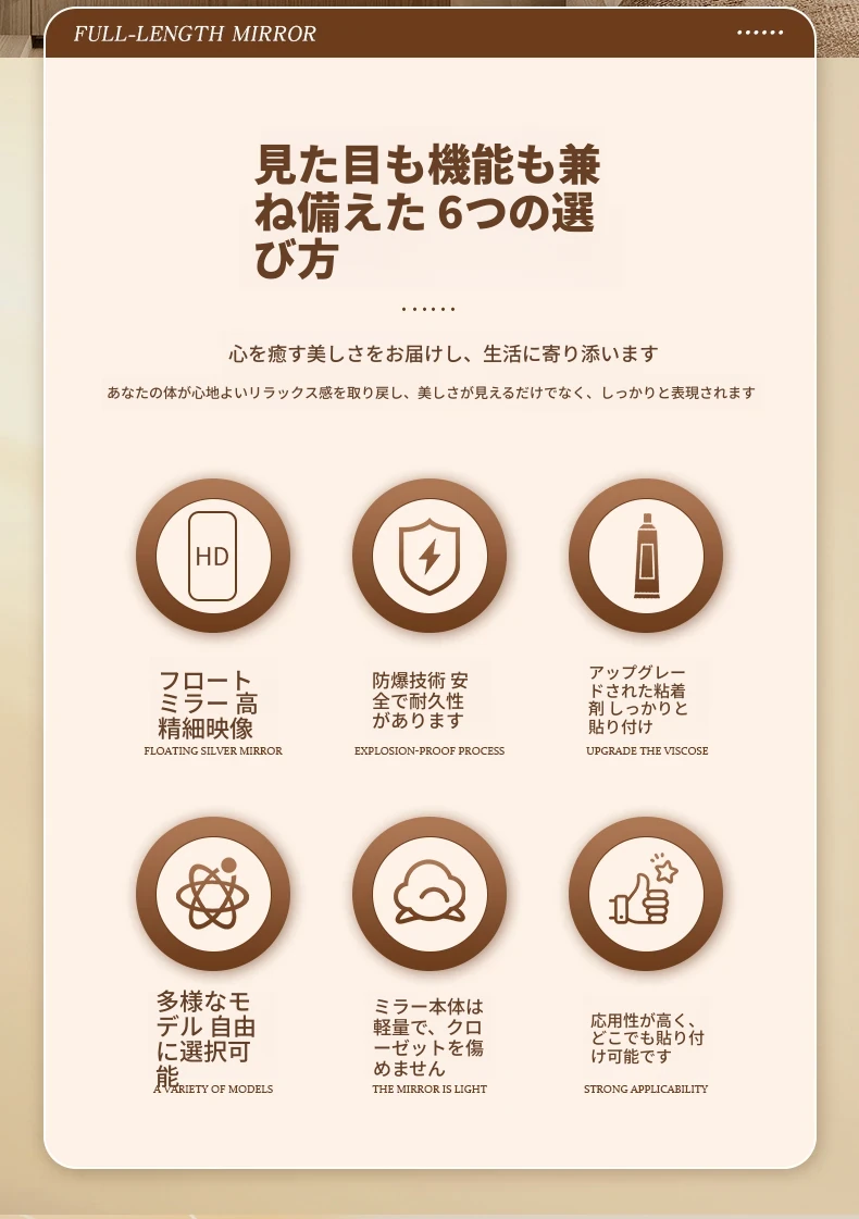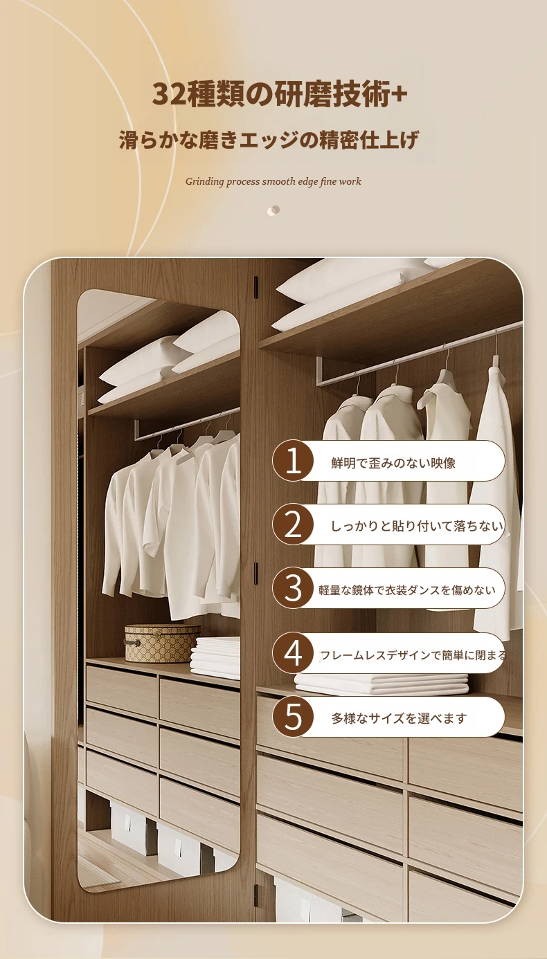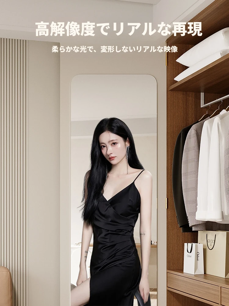 全身鏡 壁に貼るだけの自粘式 クローゼットドア用 おしゃれな隠れた鏡 宿舎にも最適 穴あけ不要のガラスミラーでコーディネートを楽しもう!