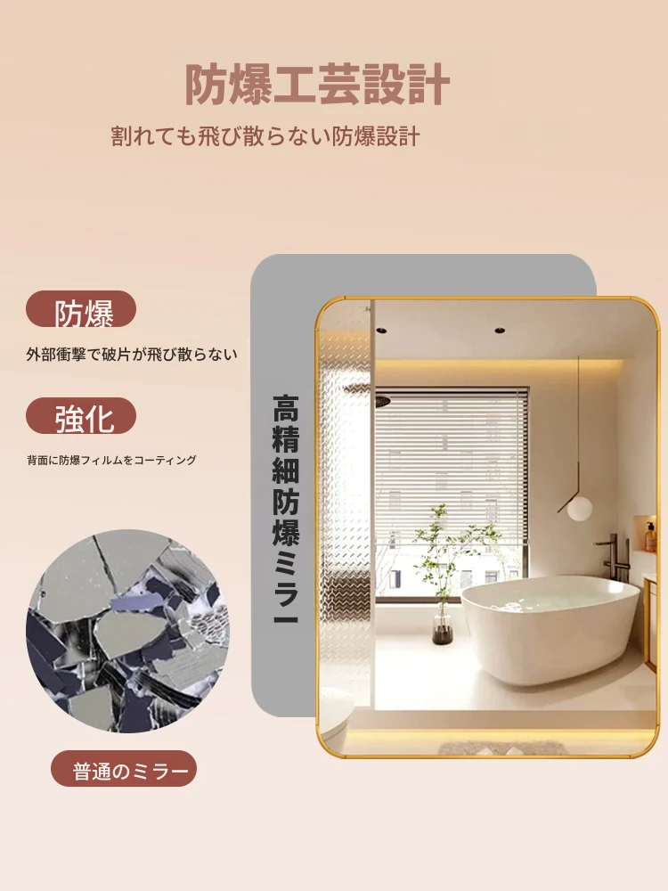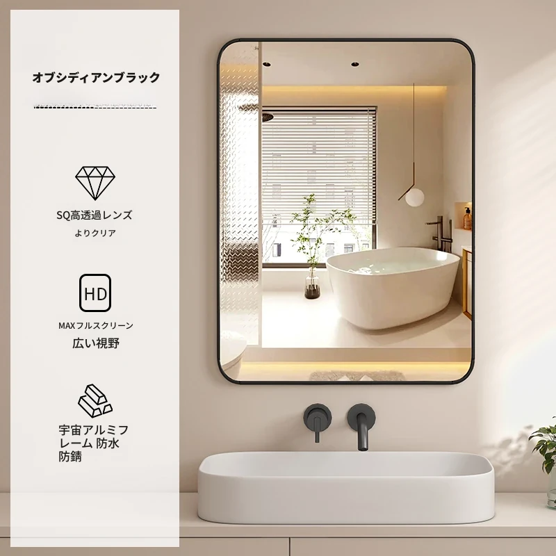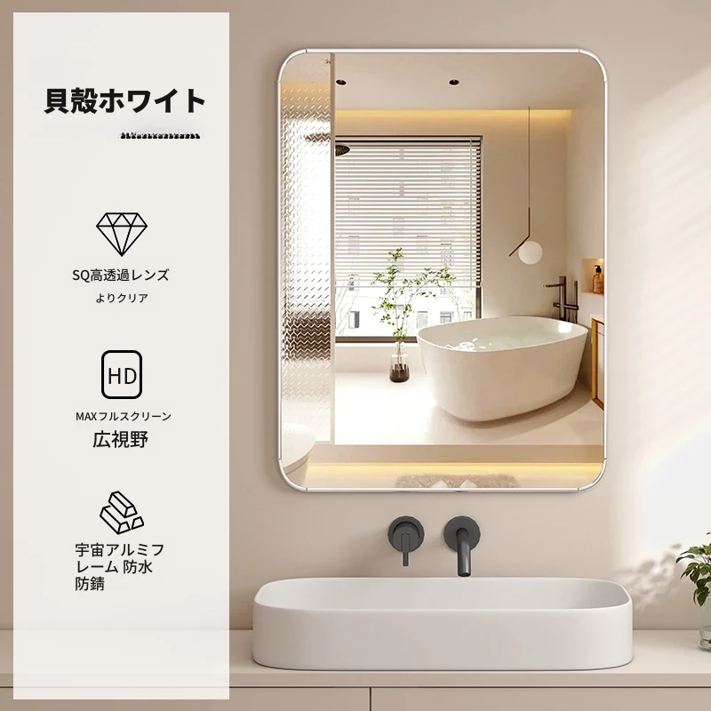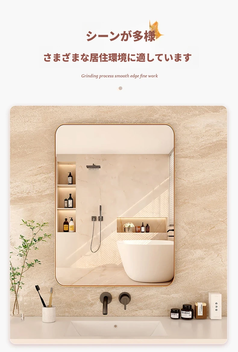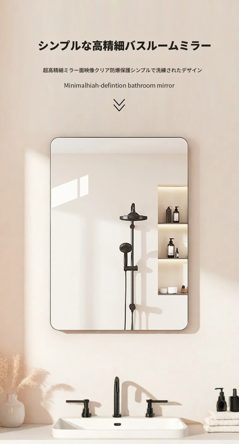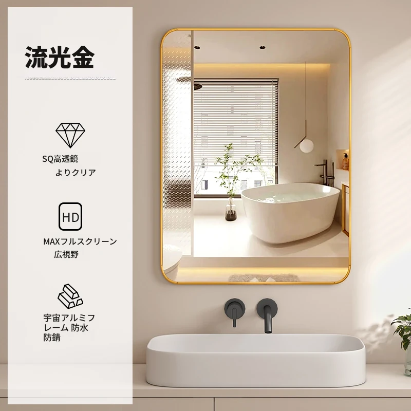 自粘式ウォールミラー|おしゃれな化粧台用|ドレッサーやトイレ、バスルームに最適|簡単取り付けで穴あけ不要!お部屋を広く見せる機能的なアイテムです!