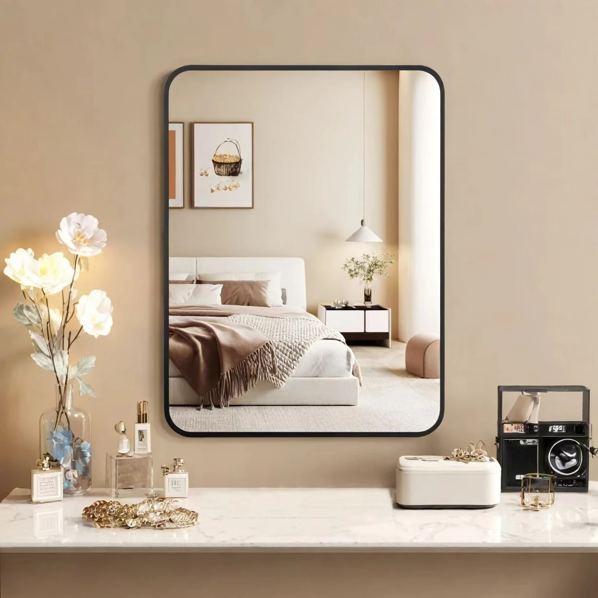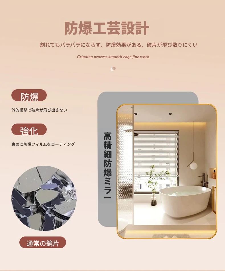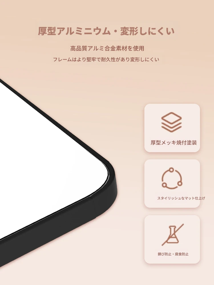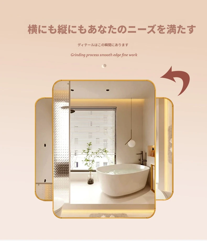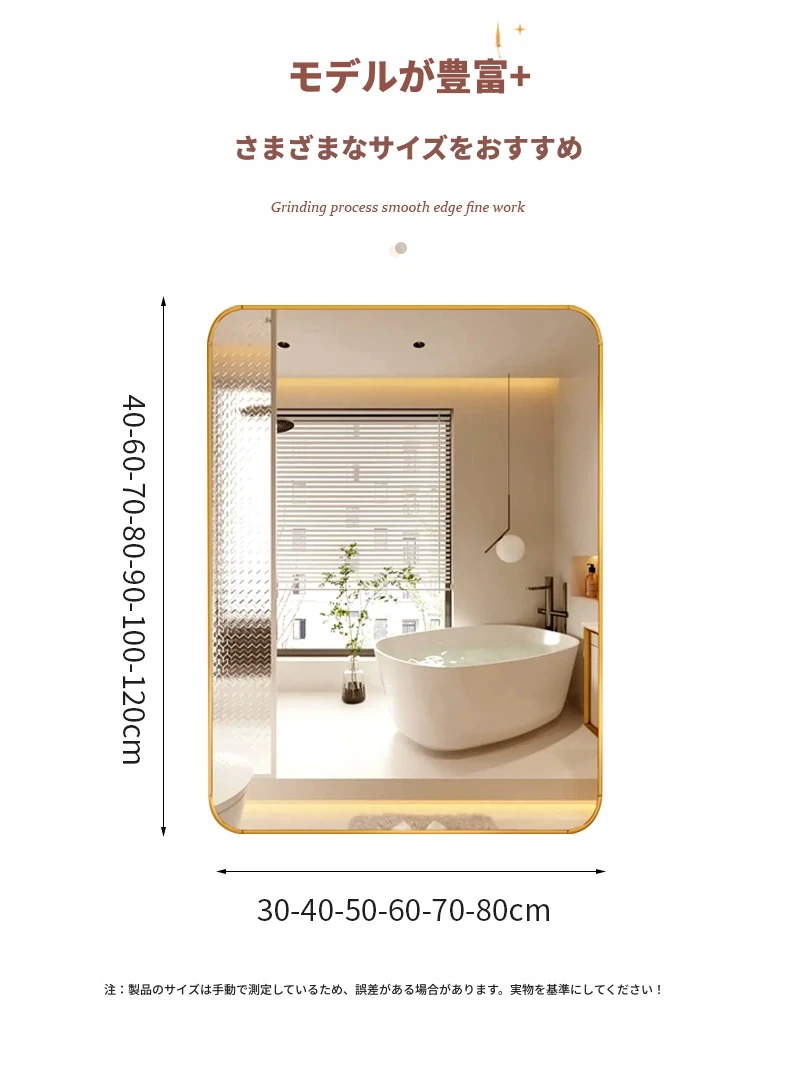 自粘式ウォールミラー|おしゃれな化粧台用|ドレッサーやトイレ、バスルームに最適|簡単取り付けで穴あけ不要!お部屋を広く見せる機能的なアイテムです!